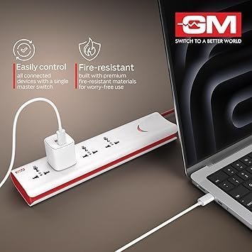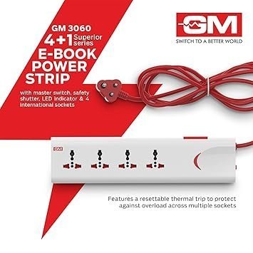 Be the first to review “GM 3060 Extension Board 10Amp Output 250 Volts with 2 Mtr Extension Cord & Surge Protector | Master Switch, Safety Shutter, 4 International Sockets | Multi Plug Travel Adapter for Home Appliances”