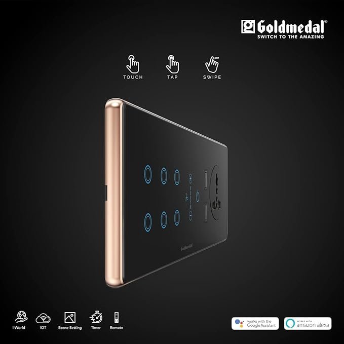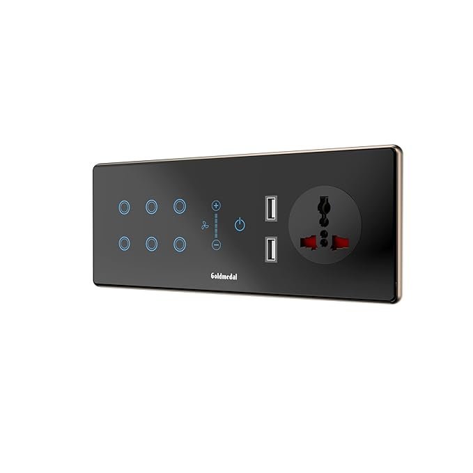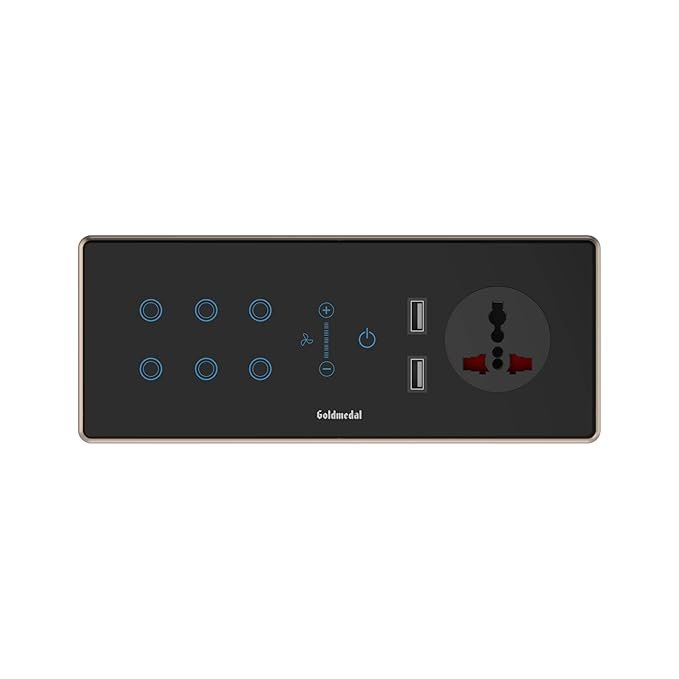Goldmedal 6Module I-Touch Wifi Panel|6 Switch,Fan Regulator,6A Socket And Twin Usb|Home Automation|No Gateway Required|Works With Iworld App& Rf Remote,160-240 Volts