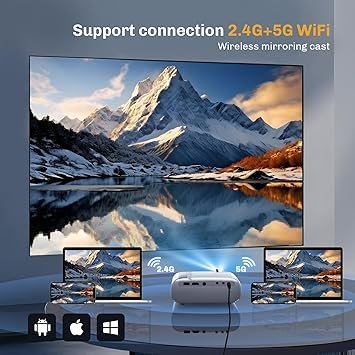 【2.4G+5G WIFI Wireless Screen Mirroring】HIPPUS WiFi projector supports 2.4G+5G WiFi connection and is designed to be compatible with Android/iPhone/Windows 10. Wireless transmission and screen mirroring require no additional conversion cables. You can connect your device to the projector at any time to enjoy the fun of big-screen life.