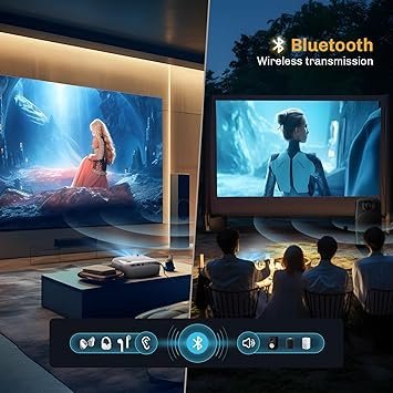 【Bluetooth Projector】The projector’s built-in speakers. Supports connecting various Bluetooth devices to adjust the volume according to the projection environment design. The connection and use of various Bluetooth speakers can help you immerse yourself in the big-screen fun brought by the projector. Please note that Bluetooth connectivity for screen playback is not supported.