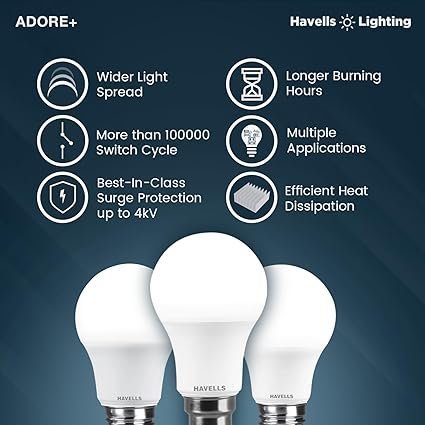 MOS Havells 9w LED Bulb for Home & Office |B22 LED Bulb Base |Cool Day White Light (6500K) |4Kv Surge Protection |High Voltage Protection |Eco Friendly Energy Efficient | Pack of 21