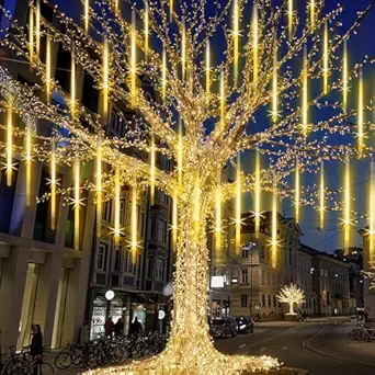 - ✅ 【Wide Application】 Each beads of the outdoor lights fall in sequence then have a slight delay on each tube, just like meteor shower or falling snow across the night sky, which shows a super beautiful display. They are perfect to decorate trees along street/park/ river, hang along the roof, great for market engineering lighting, urban and architectural beautification. Ideal for patio, yard, garden, hotel hall, shopping mall decoration.