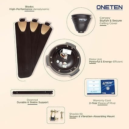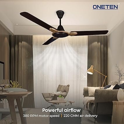 Be the first to review “ONETEN BOUNCER Ceiling Fan | 1200mm BEE Star Rated Ceiling Fan for Home | High Speed 380RPM | Power Saver | 100% Copper Winding |” Cancel reply
